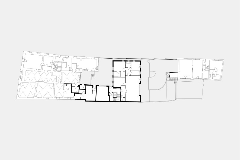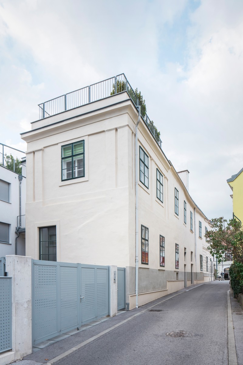 Die Baugeschichte des zweigeschoßigen „Mölkerhofs“ reicht bis ins Mittelalter zurück. Dementsprechend verschränkt und vor allem im Inneren nach wie vor ablesbar sind Bau- und Nutzungsphasen des denkmalgeschützten Gebäudes, in dessen Erdgeschoß sich derzeit ein Gastronomiebetrieb befindet. Im Zuge der umfassenden Sanierung unter der Bauleitung von Thomas Reim konnte das markante Dach in enger Abstimmung mit dem Denkmalamt eingeschoßig ausgebaut werden. Im hinteren Teil der Liegenschaft wurde ein dreigeschoßiger Gebäudekomplex mit Wohnungen – alle davon mit Freibereichen – und eine Tiefgarage errichtet.